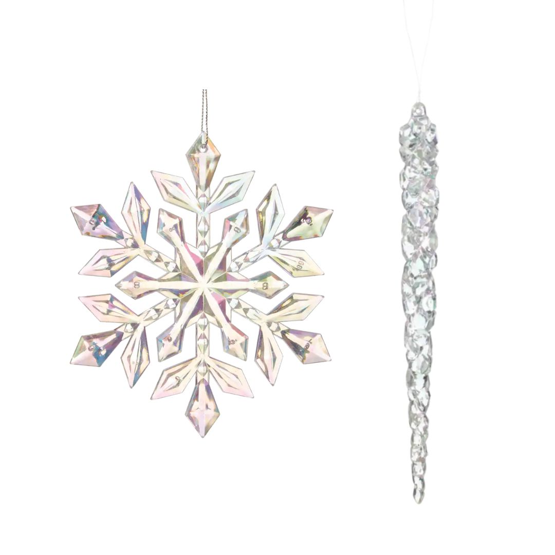 Iridescent Icicle & Snowflake Ornamnets (Set of 34)