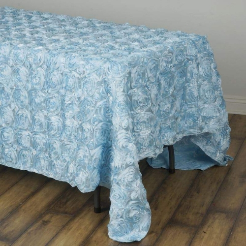 3. Light Blue Rosette Tablecloth - 132" X 90"
