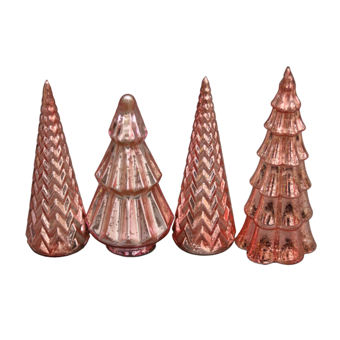 Metallic Pink Glass Trees - Set of 4