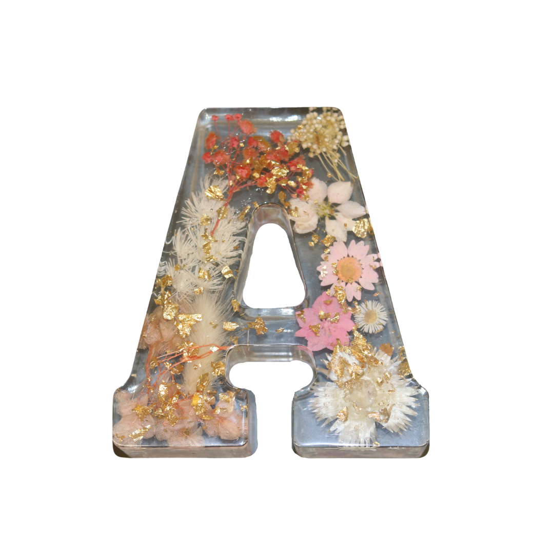 3. Resin Letter "A" - Pressed Flowers - Pink & Gold